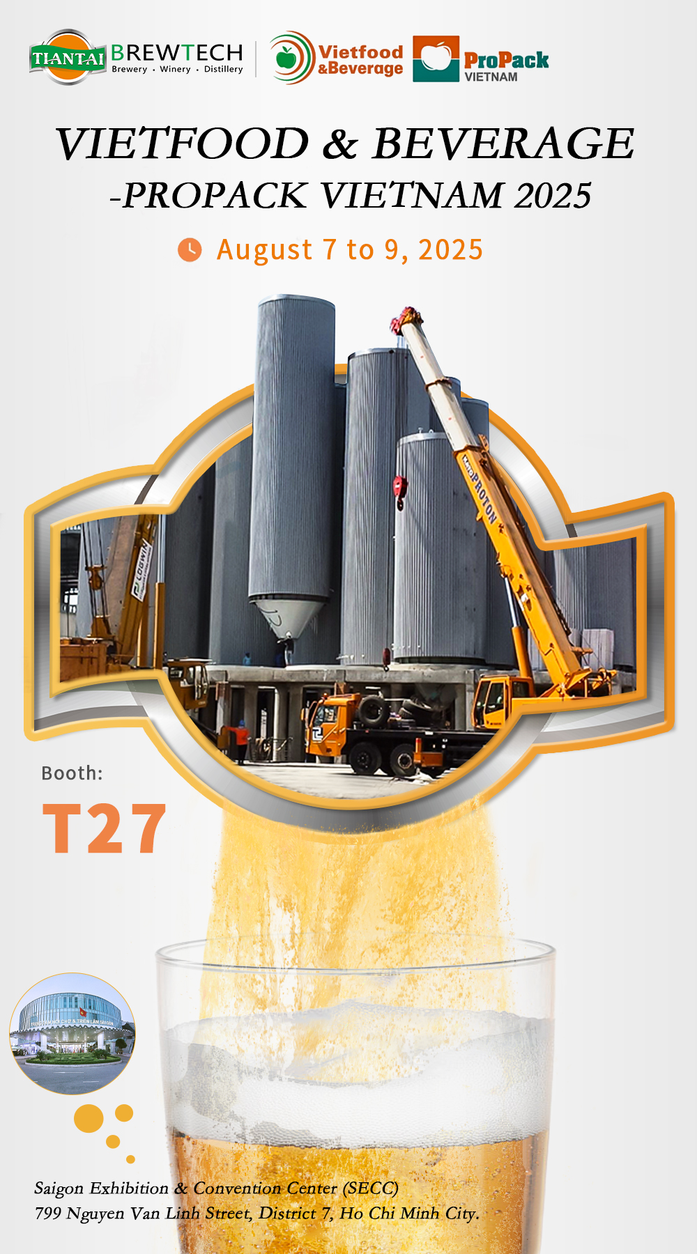 Tiantai Brewtech, a leading name in brewing and beverage equipment, is thrilled to announce its participation in the highly anticipated Vietfood & Beverage – ProPack Vietnam 2025. As one of the premier suppliers of high-quality brewing, distillery, and beverage production systems. Whether you’re an established brewery, distillery, winery, or a new venture looking to start your own production line, Tiantai Brewtech is committed to providing customized solutions and professional expertise to meet your unique business needs.